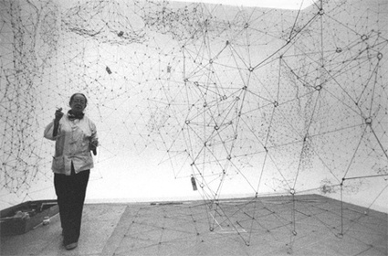 Gego (1912–1994, Allemagne/Venezuela) Gertrud Goldschmidt de son vrai nom, dite Gego, étudie l’architecture et l’ingénierie avant de fuir les nazis en 1939. À la fin des années 50, elle est l’une des artistes majeures d’Amérique latine. Si ses dessins et petites sculptures en métal sont des réminiscences de ses études d’architecture, ce sont surtout des oeuvres autonomes qui relient le spatial à l’organique. Elle les appelle des « dessins dans l’espace ».